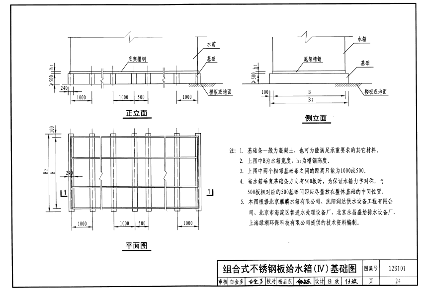 組合式不銹鋼助板給水箱(一)基礎圖: