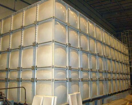 2、材料進入現場后,先把模壓的板塊進行拼裝組合,采用螺栓和密封圈對板塊密封連接的工藝,根據水箱尺寸長×寬×高進行螺栓?接,把模壓好的板塊一起組合成水箱的幾大板面或把壓塊按水箱長寬或高度分幾塊結合螺栓連接,后一層一層的向水箱頂部用螺栓?接,操作時根據施工現場場地施展而定。