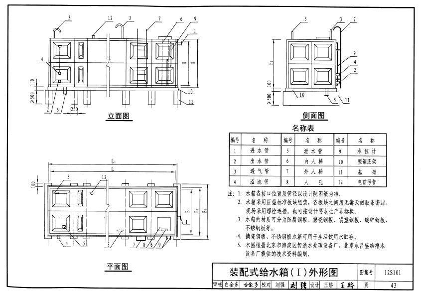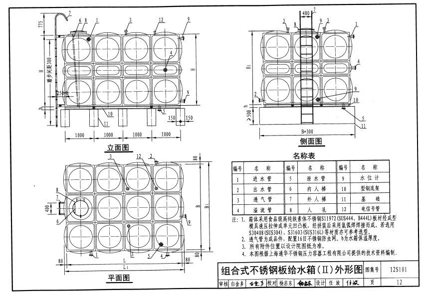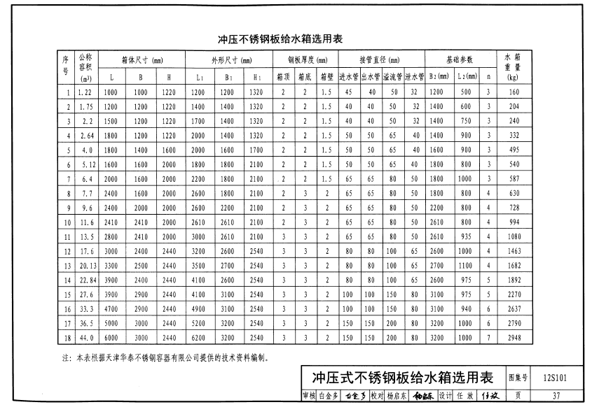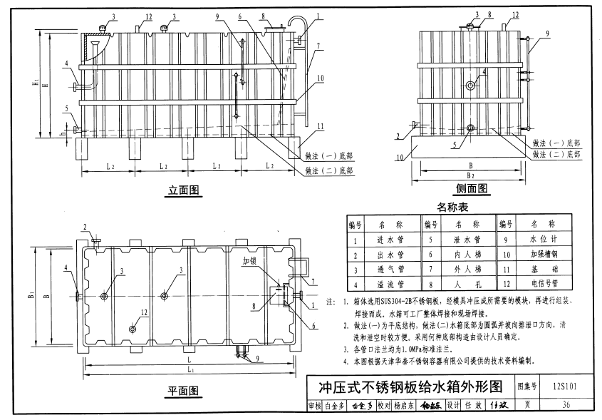 點擊下載:不銹鋼水箱圖集 12S101 PDF格式