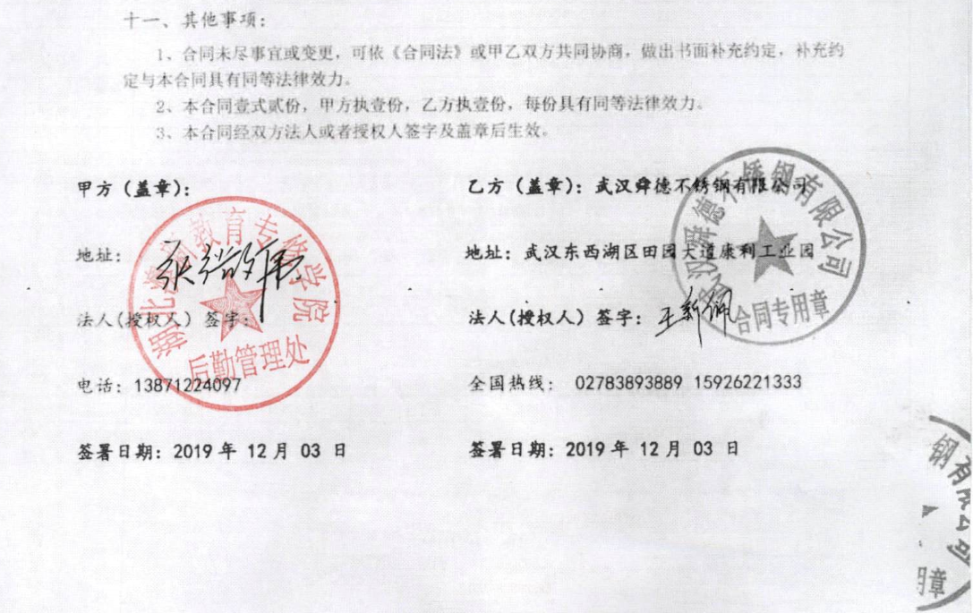 湖北澳新專修學院2019年12月3日與舜德不銹鋼水箱廠家簽定112噸不銹鋼消防水箱訂單,并按期按裝完畢。