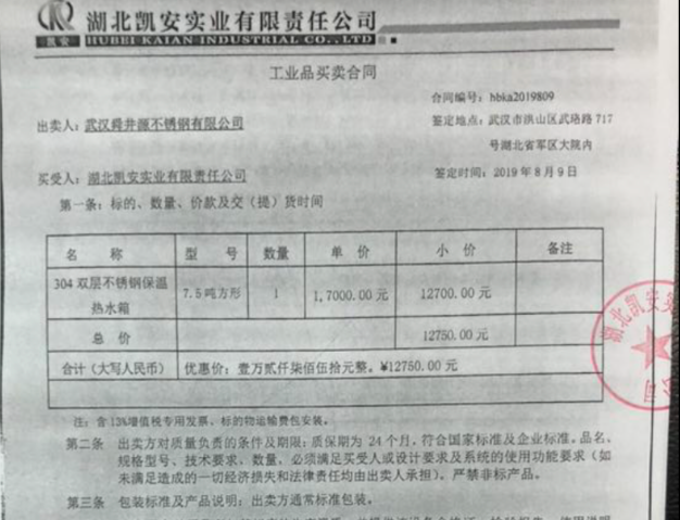 我公事與2019年8月30安裝完湖北凱安實業有限責任公司7.5噸不銹鋼保溫,現場驗收領導說,安全、美觀、省空間,是不銹鋼水箱行業的革命領先性的產品。武漢舜德不銹鋼有限公司,廠房座落于三環和外環之間的107國道邊上,與中南建材城之間的康利工業園。我公司現注冊資金壹佰萬元,廠房面積3200平方米,專業從事不銹鋼水箱生產加工.公司秉承“加工您放心,質量我保證“的經營理念.配備了大型水箱壓模機,黃鍛的數控4米剪板機和折彎機,可針對板材進行下料打孔和加工半成品.后繼加工客戶可選擇氬弧焊,點焊,二氧化碳保護焊,電焊等進行焊接,加工,任客戶選擇. 各項指標符合國家行業標準,通過了國家相關機構的認證與檢驗,產品執行標準Q/WJZ01-2004。 公司引進先進設備,技術力量雄厚。